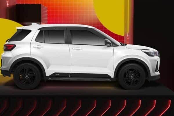 Penggunaan Headlight LED, DRL LED, LED Rear Light Combination dan Sequential Turning Light juga membuat tampilan eksterior Daihatsu Rocky semakin sporty. Anda juga akan mendapatkan spoiler depan, belakang, serta side body kit. Juga menggunakan velg 17 inchi berwarna hitam.